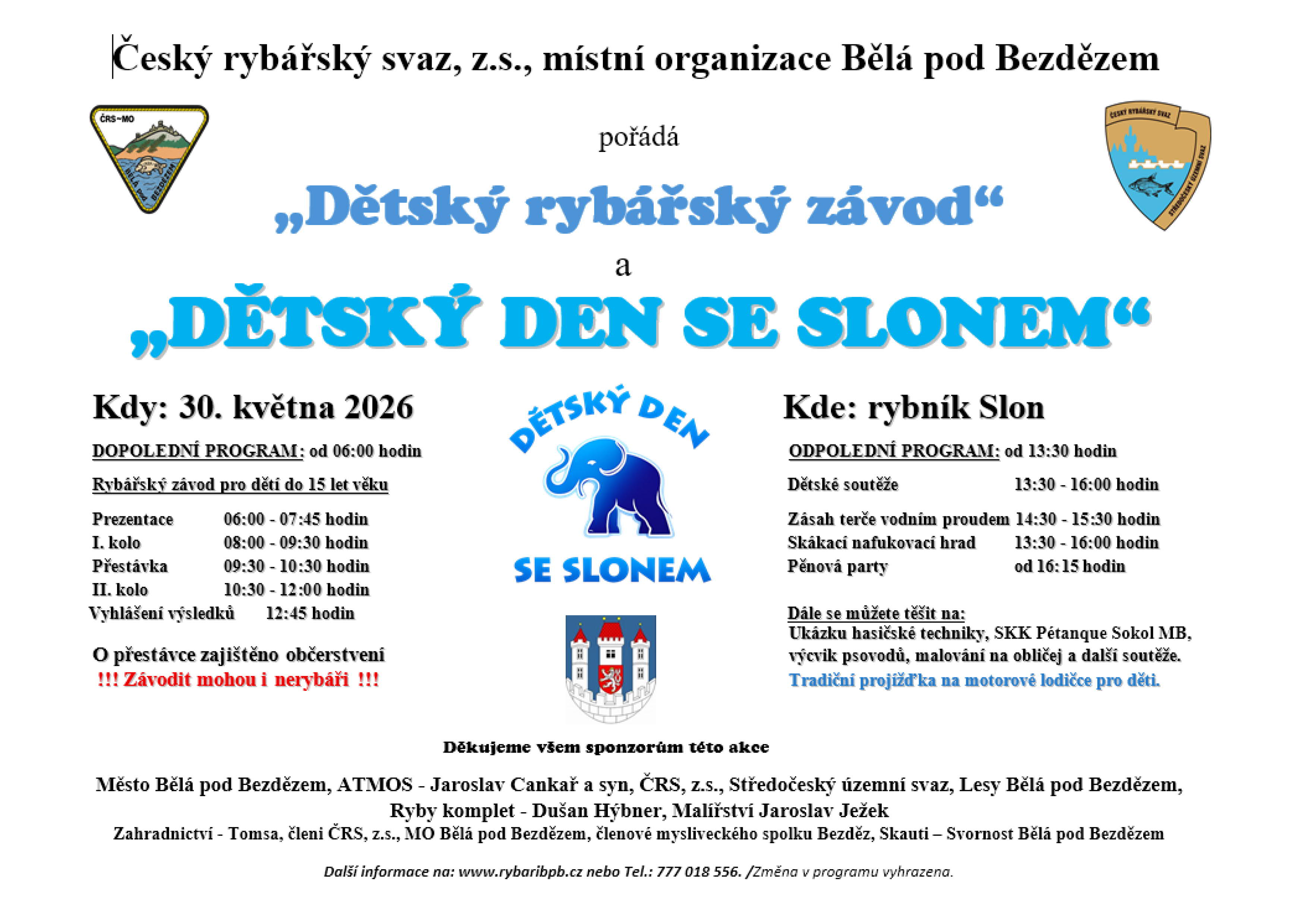 Rybník Slon v Bělé pod Bezdězem opět ožil mladými rybáři, kterých se dne 3. června 2023 sjelo celkem 72 různého věku do 15 let a to nejen z okolí Bělé pod Bezdězem, ale také Mladoboleslavska a dokonce k nám zavítali závodníci z Prahy, Štětí nebo Bechova. Nádherné počasí od samého rána, perfektně připravené zázemí, nádherné a bohaté ceny pro každého registrovaného, kterým dominovali krásné poháry, které do tohoto tradičního závodu věnoval náš Středočeský územní svaz.